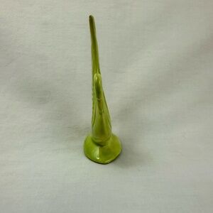 Mid-century modern chartreuse porcelain swan has been in storage for decades. It measures approximately 4.75" tall x 2" base. No chips or cracks that I noticed.