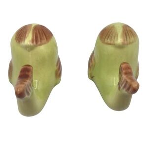 Put vintage whimsy to your kitchen with this adorable pair of male and female whale salt and pepper shakers. Hand-painted in Japan, these mid-century ceramic shakers feature a retro chartreuse/yellow-green color and charming anthropomorphic details that make them irresistible to collectors and retro decor lovers alike. Perfect for display in a vintage kitchen, dining room, or as part of your salt and pepper collection.