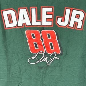 Get ready to rev up your style with this vintage Chase Authentics Dale Jr. T-shirt! Featuring bold logos and vibrant green color, this shirt is a must-have for any NASCAR fan.