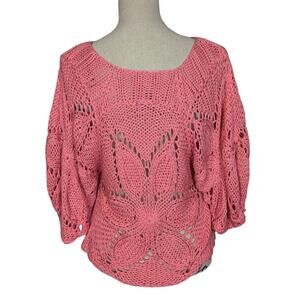 Vintage Chaudry KC Floral Open Knit Boho Crochet Sweater Pink