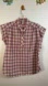Super cute plaid blouse. 34 button. Mandarin collar. Cap sleeve. Belt loops, but no belt. I think this is from late 1970s early 1980s, but not 100% sure. Has a gold metallic detail throughout. curved hem. Excellent vintage condition.