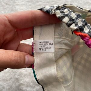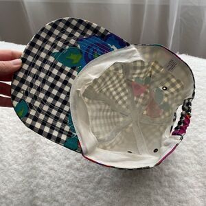 Keywords: Vintage checkered baseball cap, floral cotton hat, stylish baseball cap, unique hat accessory, casual fashion statement, adjustable cotton cap, playful vintage style.