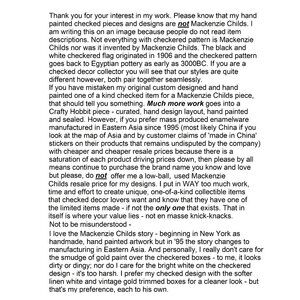 Vintage rehab vintage style checks bell, porcelain hand painted black and white checks pattern with vintage goldtone trim. Add to your checked dining decor, checkered living room accents or nestle in with your vintage buffalo check kitchen. Decorative fluted skirt edge style, ceramic with ceramic clapper. 4.75 x 2.5 in.; weight 4 oz.