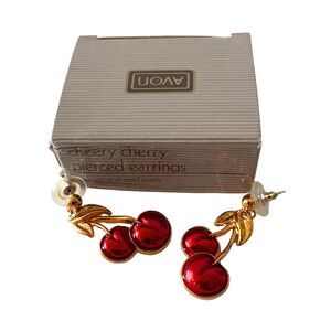 Vintage Cheerful "Cheery Cherry" Avon 1992 Earrings | Dangling Cherries | NIB