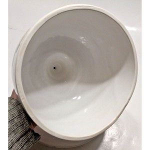 Vintage Cheese Butter Dish Cloche Domed Serving White Ceramic Fruits Florals. This dish is in really nice vintage condition. It has a chip on the rim of the platter and a few stained spots on the bottom of the platter. It is right at 7 inches tall and is 10 inches across the platter. The dome has hand painted flowers and fruits. Please see pictures for more details. *D4