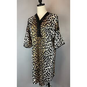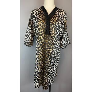 Vintage Cheetah Print Nightgown Sleep Shirt Free Size Muumuu Kaftan