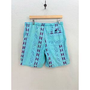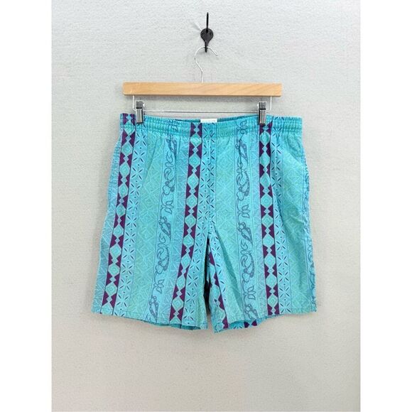 Vintage Cheetah Mervyns Mens Blue Purple Drawstring Swim Trunks Shorts Small