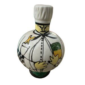 This Vintage Chef Salt and Pepper Shakers set by Giftco is an eye-catching addition to any kitchen or table. Made of quality ceramic, the multicolored set includes a tray for easy handling and a unique collectible design.