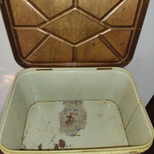 This item has been used and is in vintage condition. The box has blemishes as seen in the pictures. If you have any questions, please let me know, I would be happy to provide even more pictures for you.