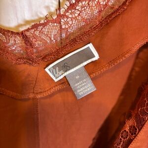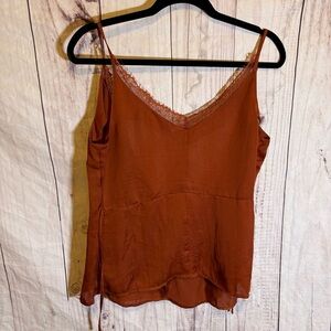Vintage Chelsea 28 Brown Rust Tie Front Camisole Lace Satin Top Medium