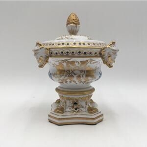 Vintage Chelsea House Hand Painted Ceramic Potpourri Urn Lions Head and Birds