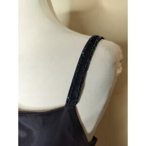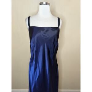 Vintage Chelsea Nites ombre blue meaded maxi dress. Size 16. Pullover styling. Polyester + acetate lining. (7462)