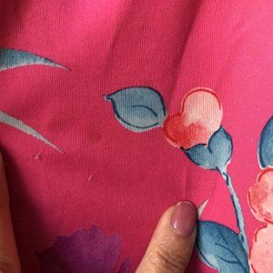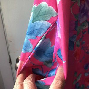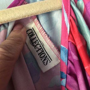 Vintage Collections Tropical Nightgown Day Dress Loungewear Pink...one side pocket....no size found see measurements short sleeve knee length flowy style a few faint stains seen...approx 21" pit to pit and 39" length