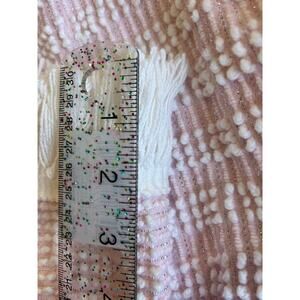 Vintage Chenille Bedspread Pink White Pearl Lurex 104X88 Mid Century Mod Fringe