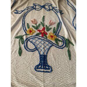 Vintage Chenille Bedspread With Basket & Bow Motif Cotton Floral Curtain Throw