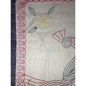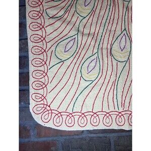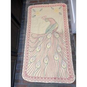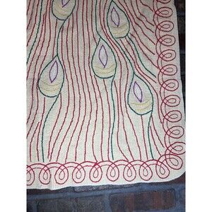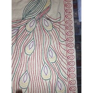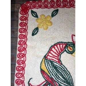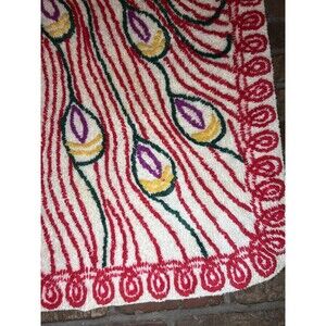 Vintage Chenille Peacock Rug Red Green Yellow White ~ 30”x55” 40-50’s Mod