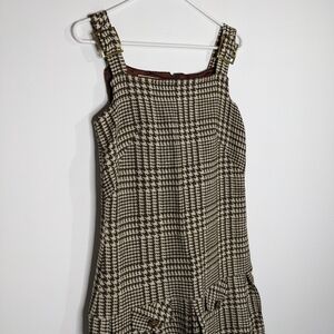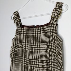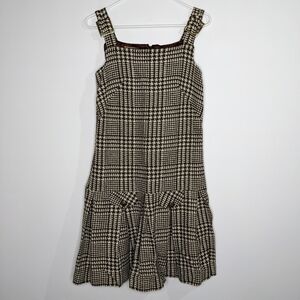 Vintage Chequers brown tan hounds tooth wool blend jumper dress 7. Zipper doesn't work and needs to be replaced. Faux pockets.