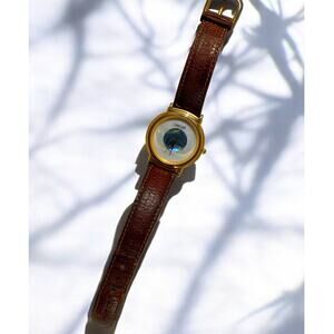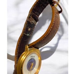 Vintage Cherokee Abalone Face Watch, 1-1/4"D, Leather Band, Needs Battery, EUC