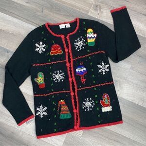 Vintage Cherokee Winter Fun Button Front Cardigan Sweater Black Multi
