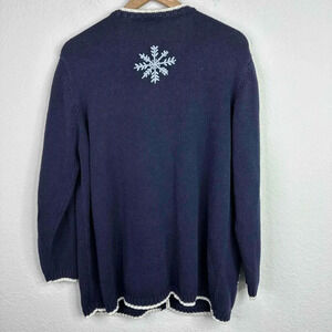Cherokee Sweater Women's 14W/16W Blue Holiday Winter Crochet Applique Cardigan