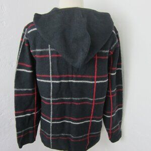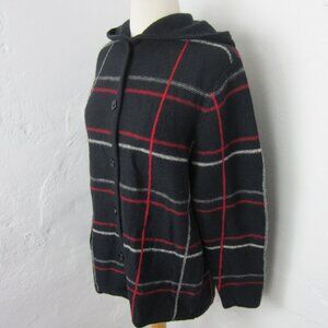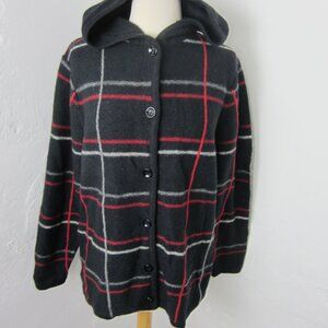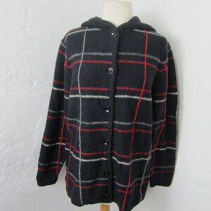 Vintage Cherokee Women's Size Small Black Plaid Wool Hooded Button Up Cardigan