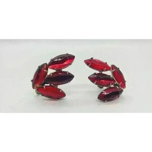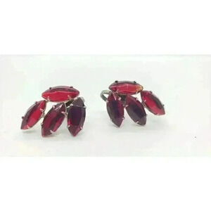 Fantastic deep red rhinestone earrings. Screw back. See photos for condition and size.