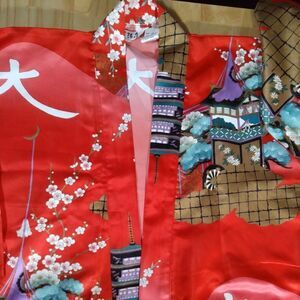 Vintage Cherry Blossoms Palace Pattern Kimono Robe Gown Shirt, Made in Japan, Size 42 - Measures p2p=25" Length=42" Sleeve Length=13" - Excellent Condition, No Flaws