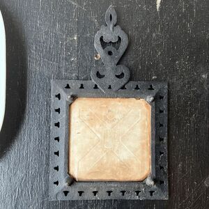 Mid-century modern, folk art, Scandinavian design, enamel tile, cast iron, vintage kitchen, retro decor, farmhouse aesthetic, rustic home, collectible trivet, wall decor, boho home, maximalist style, ironwork, colorful kitchen