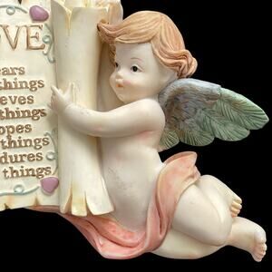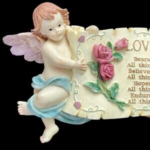 Vintage Cherub Wall Plaque 3D Angels Holding Love Scroll Art Hanging Decor