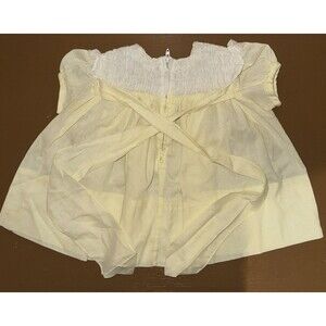 This beautiful vintage Cherubs dress is perfect for any little girl. Made from high-quality cotton material and polyester, this dress is both comfortable and stylish. The dress features a charming yellow color, short sleeves, and the pit to pit measurement is 13 flat. The shoulder to hem length is 13.3, making it a great choice for a 9-month-old infant.