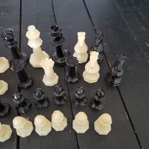Vintage Chess Pieces Replacement Plastic Black Cream Ivory Tan