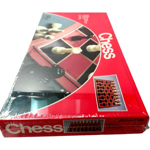 Step up your game with this vintage chess set! Featuring full-size chess pieces and a folding board, this classic strategy game is perfect for players of all ages. The set comes in a new, sealed collectible package and includes all the necessary pieces for an exhilarating game of chess.
