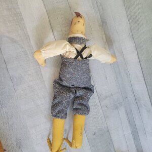 Vintage Chestnut Creek Folk Art Chicken Doll In Overalls & Bowtie Signed