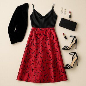 Color/print: red satin with black burnout velvet