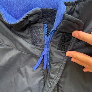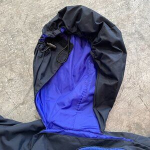 An awesome vintage jacket by WearGuard! Cool Chevron Gasoline patch logo and Ranch Packing embroidery at chest. 6 front pockets (2 zip, 2 velcro, 2 slit) and inner pocket. Fleece lining. Drawstring at waist. Hidden hood. Shell is 100% nylon and waterproof coated, lining 100% polyester. Great vtg condition! Well cared for and minimal wear.