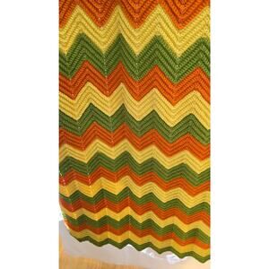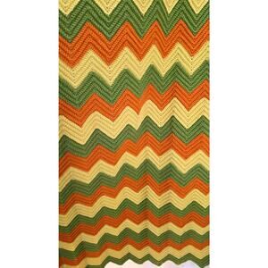 Vintage Chevron Green Yellow & Orange 70's Hand Crocheted Zig Zag Blanket