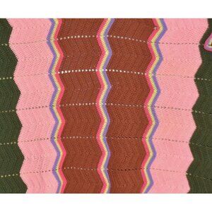 Vintage Chevron Pattern Striped Hand Knit Crochet Afghan Throw Baby Blanket
