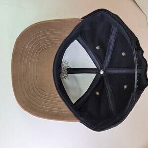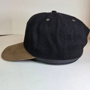 This is a vintage Chevy Trucks snapback hat made by Swingster in the USA. It features a black crown with gold embroidered “Chevy Trucks” text and logo, paired with a brown brim. The snapback is adjustable and marked with Swingster branding on the strap. A classic collectible for Chevrolet fans, truck enthusiasts, or vintage hat collectors.