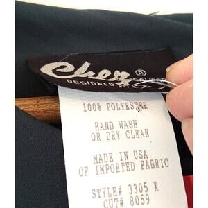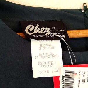 Vintage Chez California designed by Tandy layered chiffon dress, beautiful green color! cuffs have ties with rhinestone eyelets. Shoulder pads and zippered closure in back. Dress is 80s or 90s with original tags!! Sale tags added later. This dress would be perfect for a wedding guest or mother of the bride!