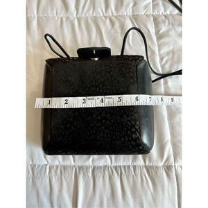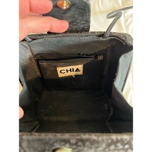 Good used vintage condition. Chia Black hard shell square purse with leopard print black pattern