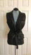 Beautiful black leather vest with a matching tie belt and notched collar. This leather is very soft and supple. It has two chest pockets and two front hip pockets. It’s fully lined in black. This is very chic or it would complicate biker look.
