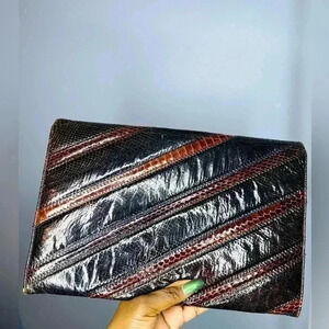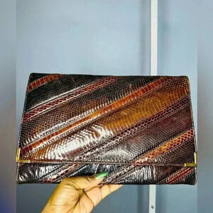 Vintage Chic De Paris Snakeskin Reptile Gold Chain Shoulder Bag