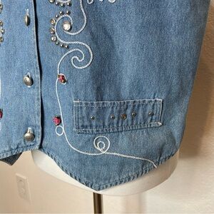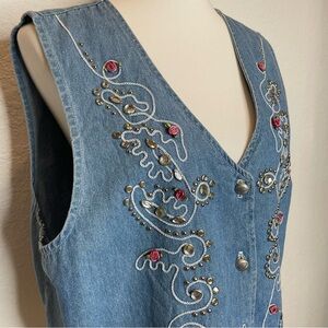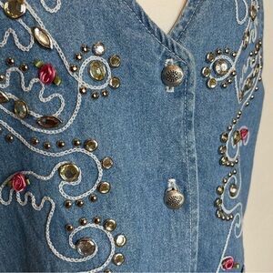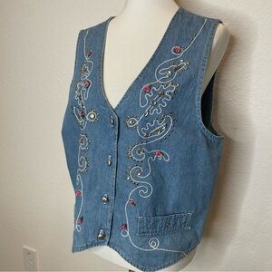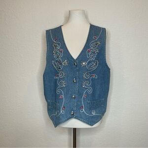 Vintage Chic Denim Vest with Embroidered Details Size Large
