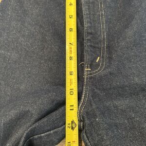 Pre-owned vintage jeans with light overall wear and minimal wash fade. Some fraying at inner hem edges as shown. Zipper, button, and seams are intact and functional.
