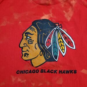 Cheer for the Blackhawks with this vintage red shirt. Perfect for retro sportswear and hockey fans!