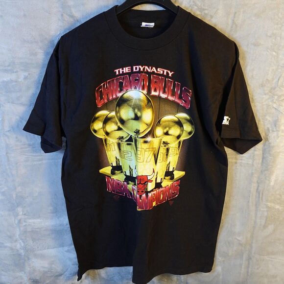 Vintage Chicago Bulls Shirt Mens Large Black NBA Champions Dynasty 90s Starter