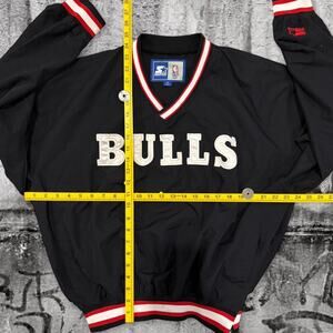 Vintage Chicago Bulls Starter Pullover Jacket – Medium Black With White Letters