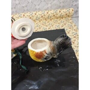 Conjure a touch of country charm with this whimsical ceramic rooster salt and pepper shaker set, complete with an adorable miniature whistle. These decorative pieces bring a playful yet elegant flair to any kitchen or dining space. The roosters, rendered in vibrant yellows, reds, and blacks, boast intricately detailed feathers and expressive features, while the tiny floral whistle adds an extra layer of endearing character. Perfect for collectors of vintage kitchenware, these pieces not only serve a practical function but also act as delightful conversation starters and a testament to timeless design. Imagine these charming roosters gracing your farmhouse kitchen table, enlivening a holiday feast, or adding a quaint touch to a rustic-themed brunch.