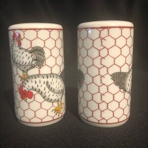 Vintage Chickens Salt Pepper Shakers - White Red Black Gray - Made in Japan