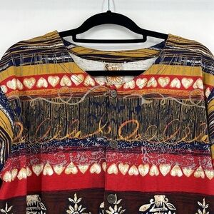 Vintage Chicos 10 years boho cardigan yellow red floral heart size medium